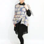 大判サイズのストールで肩から羽織る使い方もできます。春夏の日除けや室内の冷房対策としても使いやすくなっています。