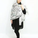 大判サイズのストールで肩から羽織る使い方もできます。春夏の日除けや室内の冷房対策としても使いやすくなっています。