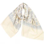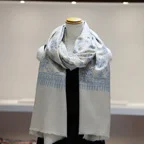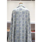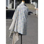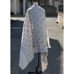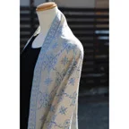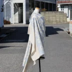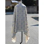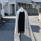 195cm×100cm大判ショールサイズで、巻きでも羽織でもどちらも使いやすいストールです。特に羽織は全面に施された刺繍が美しく輝き、サッとあしらうだけでゴージャスな雰囲気に変化します。横幅が特に長いのでドレスや着物などの羽織物としても重宝します。