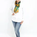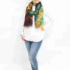 大判サイズのストールで肩から羽織る使い方もできます。春夏の日除けや室内の冷房対策としても使いやすくなっています。