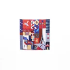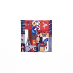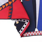 90cm×90cmの正方形サイズで小さくまとります。折りたためばサッとバッグに入れて持ち運べます。外出先でも邪魔になることはありません。また、身につけるだけでなく、手持ちのバッグにキュッと結べるアクセサリーとしても重宝します。