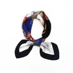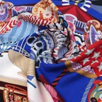 90cm×90cmの正方形サイズで小さくまとります。折りたためばサッとバッグに入れて持ち運べます。外出先でも邪魔になることはありません。また、身につけるだけでなく、手持ちのバッグにキュッと結べるアクセサリーとしても重宝します。