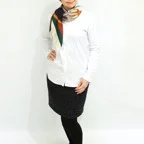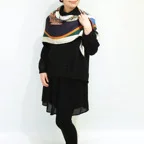 スクエアサイズで、アスコットタイのようにシャツやブラウスの中におさめて使うこともできます。室内でも巻いたままでいられるので使いやすくなっています。