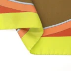 90cm×90cmの正方形サイズで小さくまとります。折りたためばサッとバッグに入れて持ち運べます。外出先でも邪魔になることはありません。また、身につけるだけでなく、手持ちのバッグにキュッと結べるアクセサリーとしても重宝します。