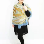 スタンダードな大判サイズで巻きでも羽織でもどちらでも使いやすくなっています。特に春夏の日除けや冷房対策としても使いやすく、ファッションのアクセントとしてなら一年中使うことができます。