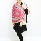 スタンダードな大判サイズで巻きでも羽織でもどちらでも使いやすくなっています。特に春夏の日除けや冷房対策としても使いやすく、ファッションのアクセントとしてなら一年中使うことができます。