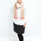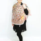 スタンダードな大判サイズで巻きでも羽織でもどちらでも使いやすくなっています。特に春夏の日除けや冷房対策としても使いやすく、ファッションのアクセントとしてなら一年中使うことができます。