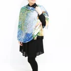 スタンダードな大判サイズで巻きでも羽織でもどちらでも使いやすくなっています。特に春夏の日除けや冷房対策としても使いやすく、ファッションのアクセントとしてなら一年中使うことができます。