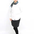 しっとりとしたやわらかい生地感で、肌に沿うような質感に仕上がっています。狙ったシルエットを出しやすく、取り扱いがしやすいスカーフです。
