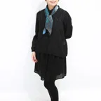 65cm×65cmの小判スカーフで、アスコットタイのようにシャツやブラウスの中におさめて使うこともできます。室内でも巻いたままでいられるので使いやすくなっています。