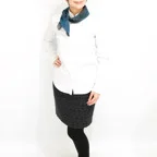 65cm×65cmの小判スカーフで、アスコットタイのようにシャツやブラウスの中におさめて使うこともできます。室内でも巻いたままでいられるので使いやすくなっています。