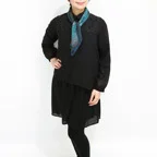 しっとりとしたやわらかい生地感で、肌に沿うような質感に仕上がっています。狙ったシルエットを出しやすく、取り扱いがしやすいスカーフです。