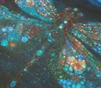 正方形キャンバスに描かれた、美しいデザイン。多色使いながら、落ち着いた色使いで合わせやすくなっています。