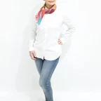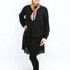 65cm×65cmの小判スカーフで、アスコットタイのようにシャツやブラウスの中におさめて使うこともできます。室内でも巻いたままでいられるので使いやすくなっています。