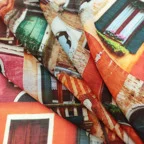 しっとりとしたやわらかい生地感で、肌に沿うような質感に仕上がっています。狙ったシルエットを出しやすく、取り扱いがしやすいスカーフです。
