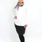 65cm×65cmの小判スカーフで、アスコットタイのようにシャツやブラウスの中におさめて使うこともできます。室内でも巻いたままでいられるので使いやすくなっています。