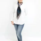 88cm×88cmの大判スカーフで、首元のアクセントに最適。アスコットタイのようにシャツやブラウスの中におさめて使うこともできますし、対角で畳んで肩から羽織ることもできます。また、身につけるだけでなく、手持ちのバッグにキュッと結べるアクセサリーとしても重宝します。