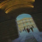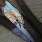 モダンな街並みを描いた、おしゃれなスカーフ。センスが光るデザインです。
