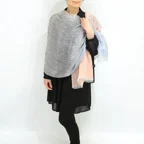 大判サイズのストールで肩から羽織る使い方もできます。春夏の日除けや室内の冷房対策としても使いやすくなっています。