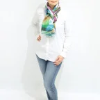 大判サイズのストールで肩から羽織る使い方もできます。春夏の日除けや室内の冷房対策としても使いやすくなっています。