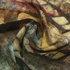 上質なリネンだけが持つ、独特の風合い。モダンなデザインと深みのある色使いで大人に似合う一枚です。