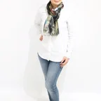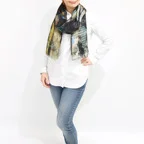 大判サイズのストールで肩から羽織る使い方もできます。春夏の日除けや室内の冷房対策としても使いやすくなっています。