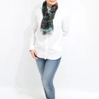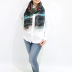 大判サイズのストールで肩から羽織る使い方もできます。春夏の日除けや室内の冷房対策としても使いやすくなっています。