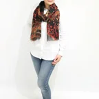 大判サイズのストールで肩から羽織る使い方もできます。春夏の日除けや室内の冷房対策としても使いやすくなっています。