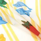 大人の遊び心をくすぐるポップなデザイン。細番手の糸を丁寧に織り上げた、ふんわりエアリーな柔らかさと共にお楽しみください♪