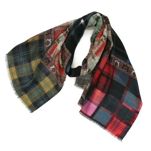 スタンダードな大判サイズで、首に巻くことはもちろん、室内でのひざ掛けにも、肩から羽織る使い方もできます。特に羽織りは、パッと華やかにエレガントな雰囲気に変わります。上半身を覆えるので、着ている服を気にせず合わせることができます。忙しい朝もコーディネートを気にする必要はありません。