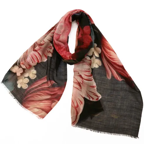 生地感よりカジュアルな普段使いにも、少しフォーマルなシーンでも使いやすいタイプです。スタイルや場所を問わず合わせることができる優れたストールです。