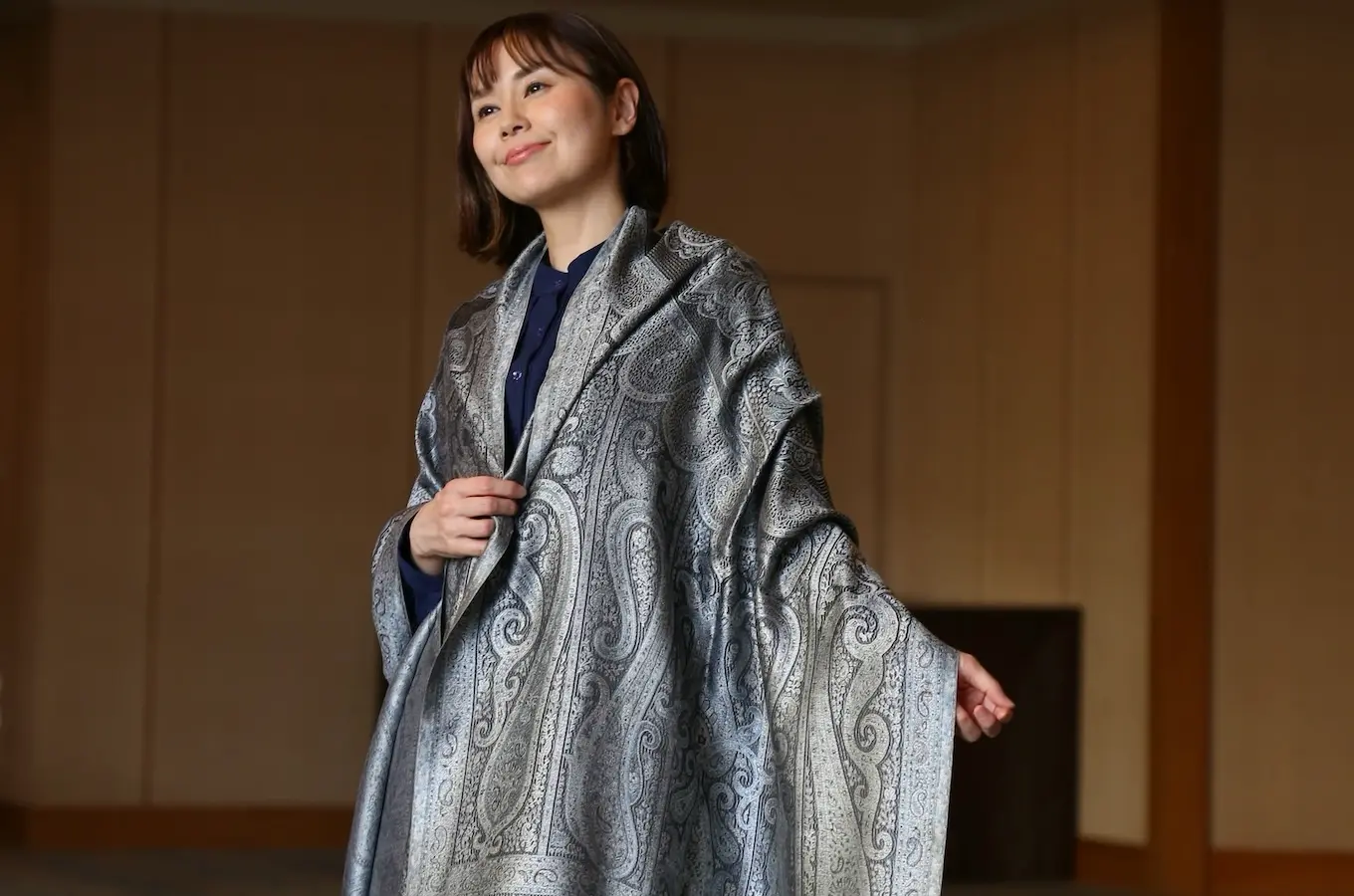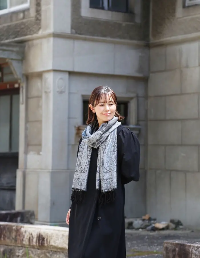 和装とも相性が良く、さらにアクセントとしてならカジュアルな装いにも合わせやすい、とても使い勝手の良いストールです。