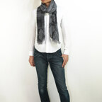 表情のある織り柄がオンにもオフにも使いやすく、やわらかな手触りで季節をまたいで重宝するウールコットンストール。モノトーンベースで着回しやすくなっています。