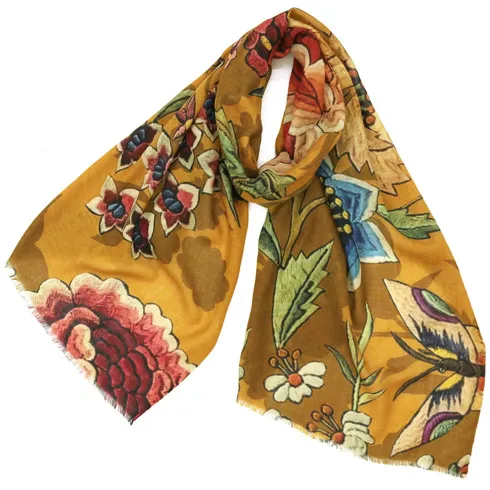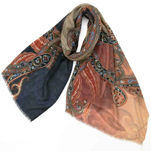 非常に大きなショールサイズで、広げて羽織れば上半身をすっぽりと覆うことができます。縦横の長さも十分にあるため、巻き方の自由度が広がります。程よいボリューム感と立体感を簡単につくることができるため、一巻きでこなれた印象になります。面積もあるので、真夏の室内での冷房対策や膝掛けとしても使いやすくなっています。