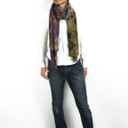 非常に大きなショールサイズで、広げて羽織れば上半身をすっぽりと覆うことができます。縦横の長さも十分にあるため、巻き方の自由度が広がります。程よいボリューム感と立体感を簡単につくることができるため、一巻きでこなれた印象になります。面積もあるので、真夏の室内での冷房対策や膝掛けとしても使いやすくなっています。