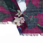 甘さ控えめ。凛と美しいウールシルクストール。女らしさを象徴するような繊細なフラワーモチーフが印象的な一枚です。