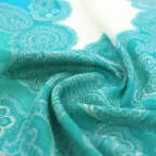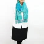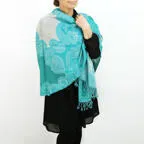 スタンダードな大判サイズで、首に巻くことはもちろん、室内でのひざ掛けにも、肩から羽織る使い方もできます。特に羽織りは、パッと華やかにエレガントな雰囲気に変わります。上半身を覆えるので、着ている服を気にせず合わせることができます。忙しい朝もコーディネートを気にする必要はありません。