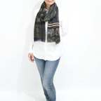 スタンダードな大判サイズで巻きでも羽織でもどちらでも使いやすくなっています。特に春夏の日除けや冷房対策としても使いやすく、ファッションのアクセントとしてなら一年中使うことができます。