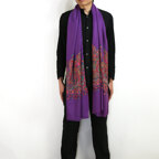 インドカシミールの洗練された感性を宿した大判ショール。最高級の素材、芸術と呼ぶにふさわしい美しい手刺繍。匠の技の全てが詰まった至高の逸品です。