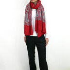 195cm×100cm大判ショールサイズで、巻きでも羽織でもどちらも使いやすいストールです。特に羽織は全面に施された刺繍が美しく輝き、サッとあしらうだけでゴージャスな雰囲気に変化します。横幅が特に長いのでドレスや着物などの羽織物としても重宝します。