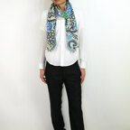 スタンダードな大判サイズで巻きでも羽織でもどちらでも使いやすくなっています。特に春夏の日除けや冷房対策としても使いやすく、ファッションのアクセントとしてなら一年中使うことができます。