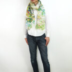 大判サイズのストールで肩から羽織る使い方もできます。春夏の日除けや室内の冷房対策としても使いやすくなっています。