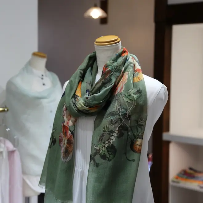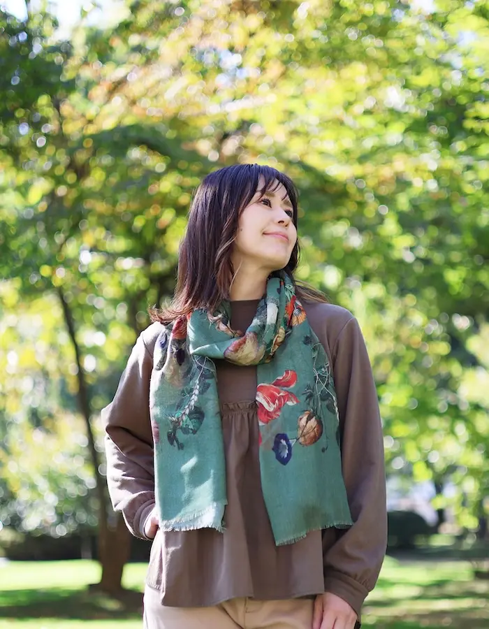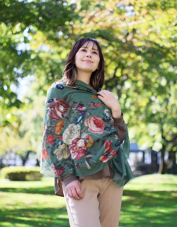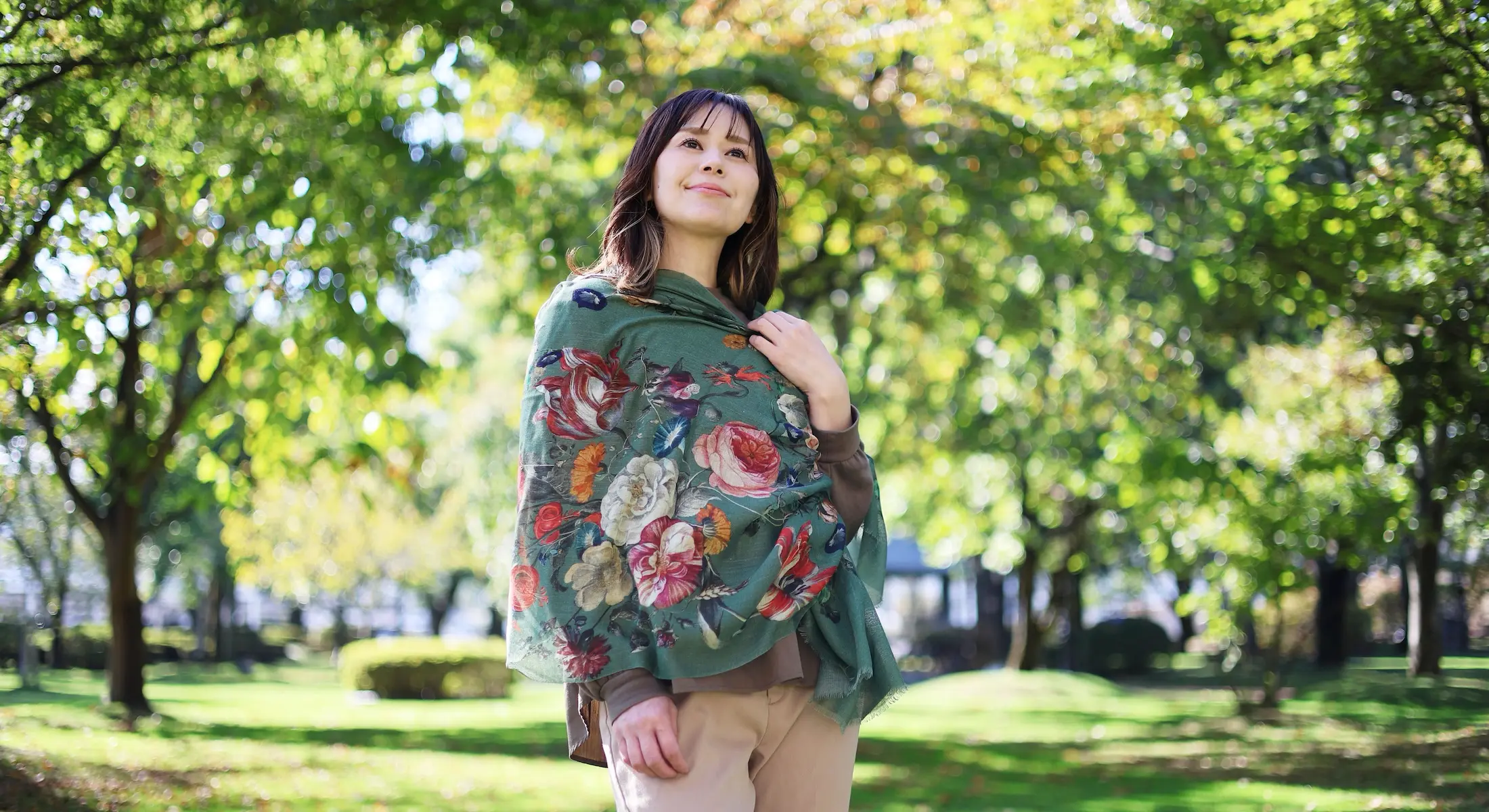 巻きや羽織はもちろん、肩から掛けるだけでもお洒落に装えます。