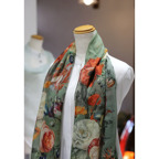 スタンダードな大判サイズで防寒や日除け、冷房対策としても重宝します。薄手の素材でシーズンレスで使いやすいストールに仕上がっています。
