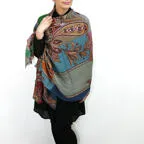 小粋な配色のカラーのペイズリーストール。巻き方によって様々な表情が楽しめます!