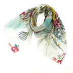 一点投入で目をみはる着映え力。建物柄が印象的なストール。薄手の素材と爽やかな色使いで季節を問わず重宝します!