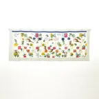 たくさんの動物が描かれたポップなデザイン。巻くたびに好きになる、遊び心ある一枚です。