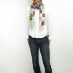 たくさんの動物が描かれたポップなデザイン。巻くたびに好きになる、遊び心ある一枚です。