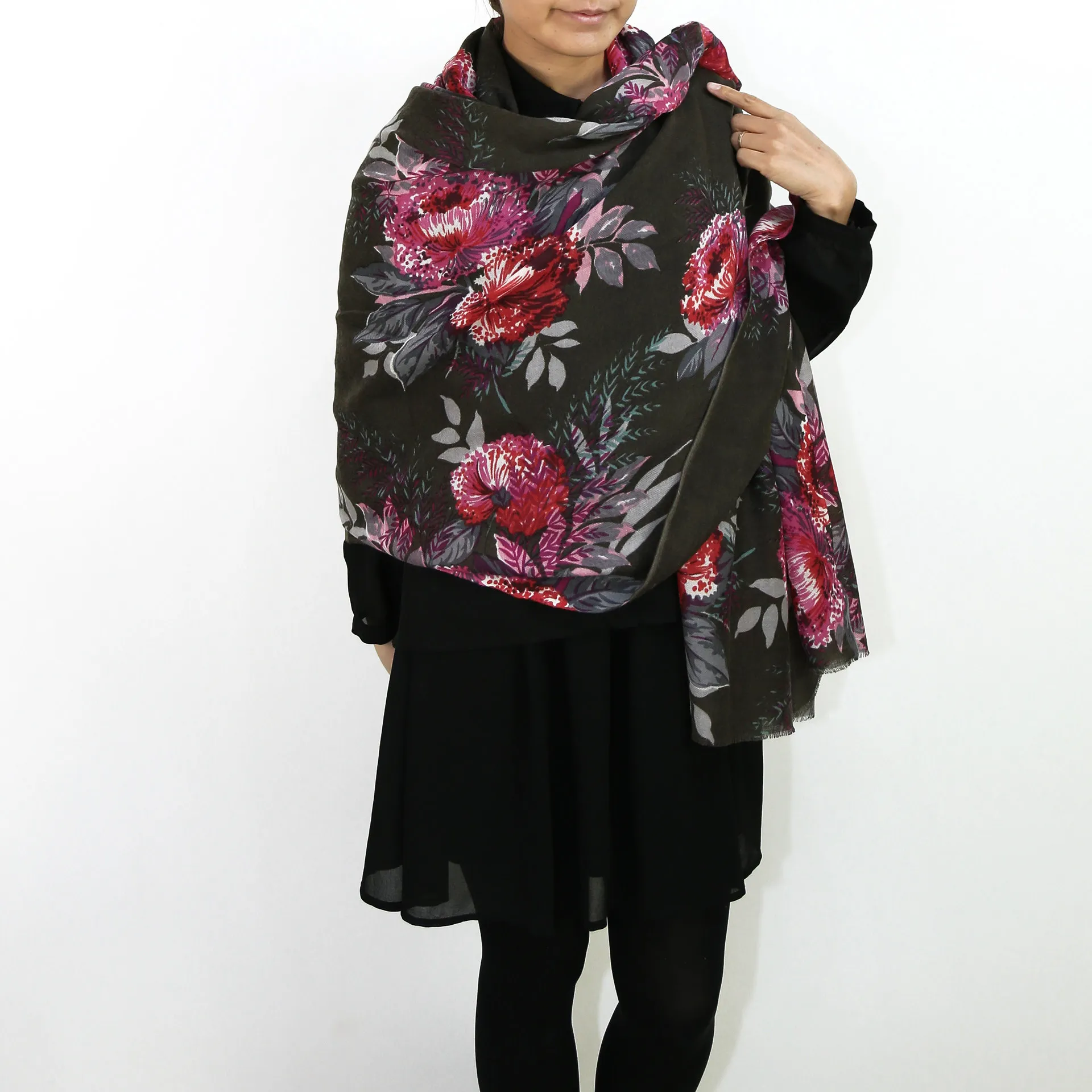 生地感よりカジュアルな普段使いにも、少しフォーマルなシーンでも使いやすいタイプです。スタイルや場所を問わず合わせることができる優れたストールです。