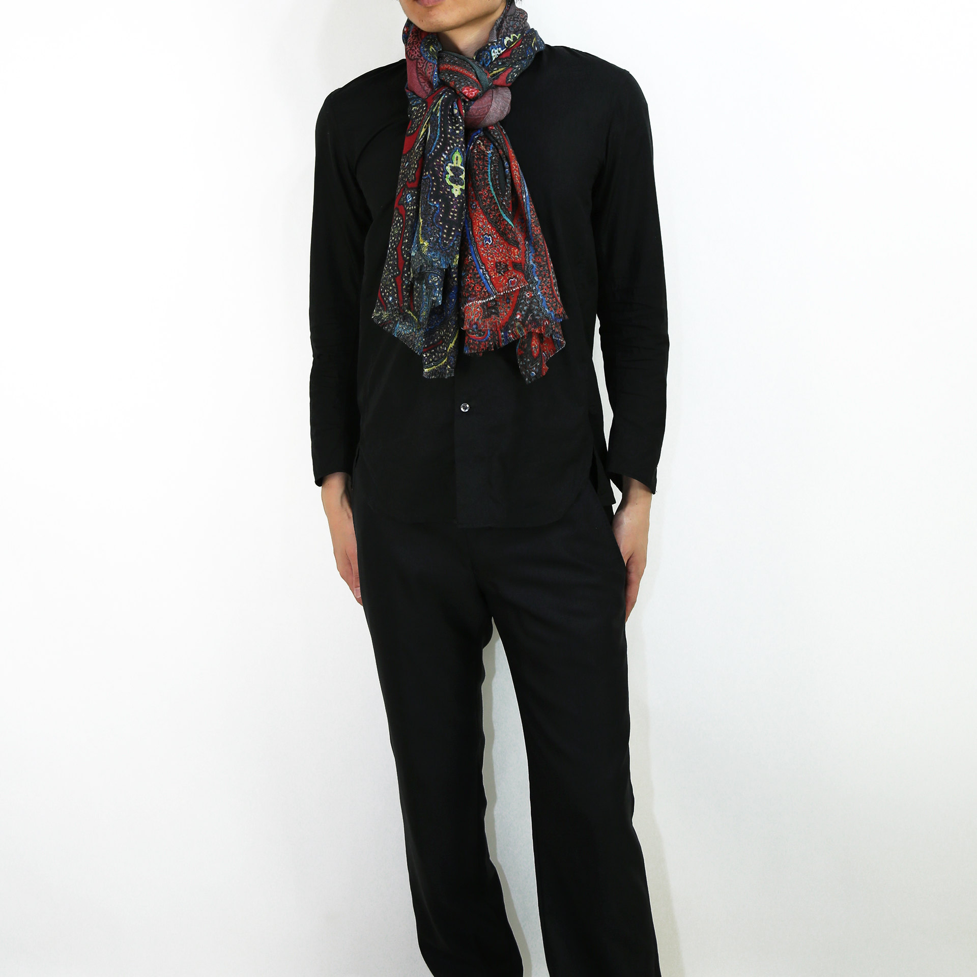 薄手の生地としなやかな風合いでボリュームを抑えてシャープに身につけることもできます。複雑な巻き方でも取り回ししやすく、さまざまな巻き方でおしゃれを楽しめます。